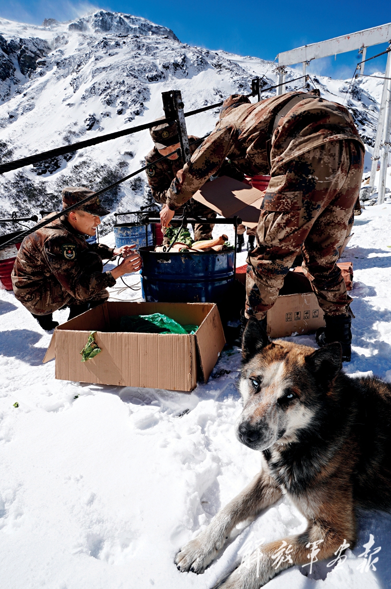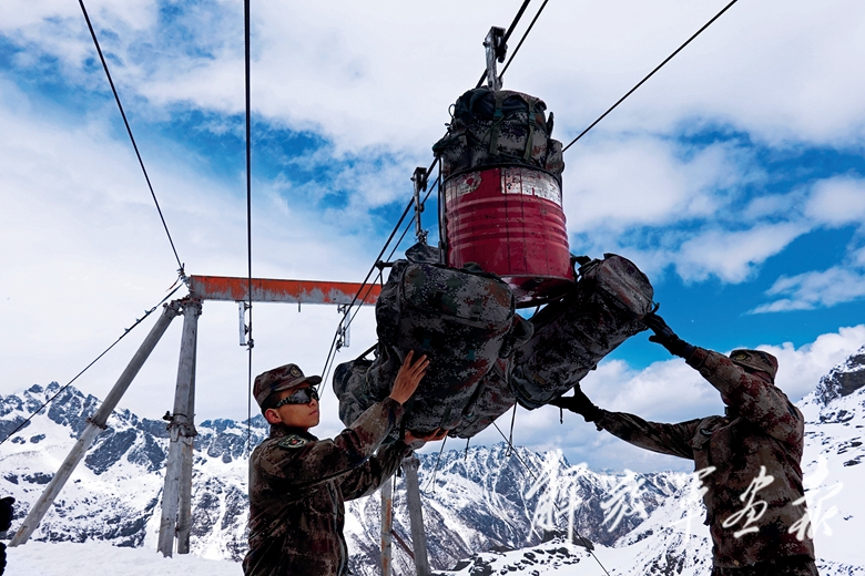 第二天上午,我們到達(dá)九連,這里海拔3960米。一條索道映入記者眼簾,在連隊蹲點的團(tuán)長李廣華正組織官兵通過索道給卓拉哨所“空運”給養(yǎng)。他告訴記者,在漫長的大雪封山期,以前官兵每個月都要從山下連隊往山上哨所背運物資,徒步攀爬經(jīng)歷了太多的艱辛和危險。去年這個時候,在上級的關(guān)心幫助下,卓拉哨所開通了運輸索道,結(jié)束了近半個世紀(jì)運輸物資靠“人背馬馱”的歷史,哨所官兵封山期吃菜難、飲水難等“老大難”問題得到有效解決。