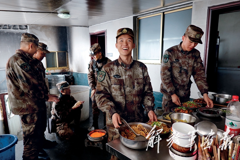 戰(zhàn)士夏夢鑫兼任哨所的“大廚”,他喜歡和官兵交流做各地的家鄉(xiāng)菜,把哨所廚房變成了一個融合東西南北中菜肴的“烹飪學(xué)校”。