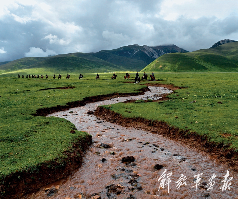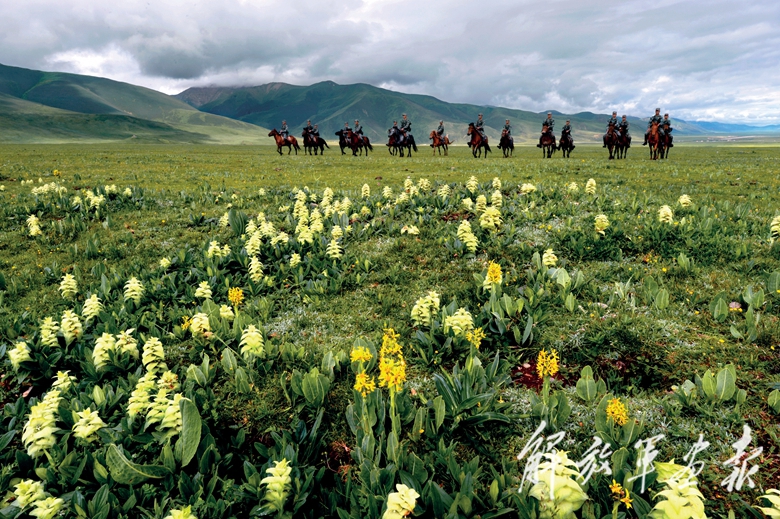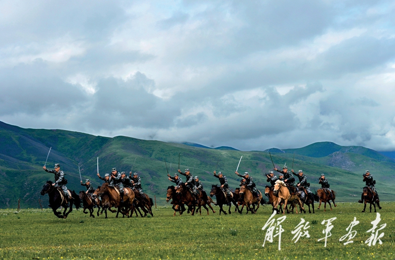盛夏,蔥翠的巴塘草原上,西部戰(zhàn)區(qū)陸軍某旅玉樹獨立騎兵連官兵騎馬飛馳而過。